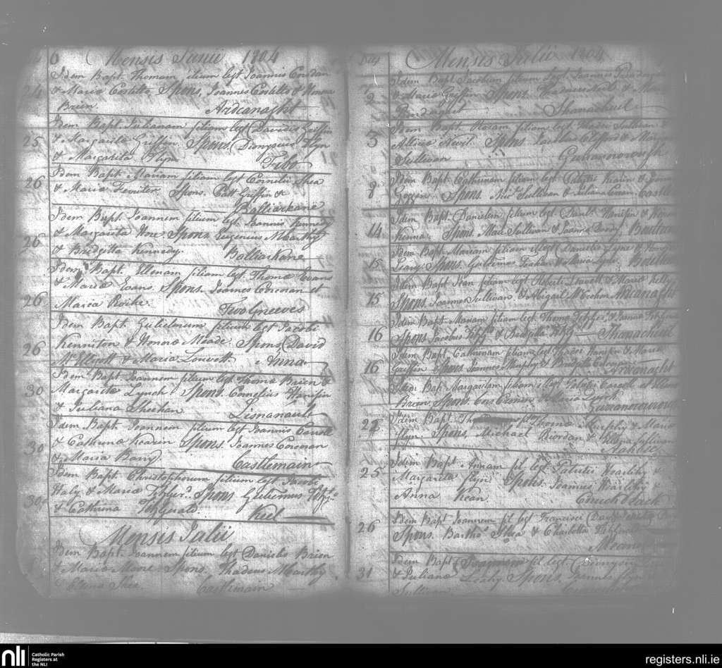 Keel; County of Kerry; Diocese of Kerry. Baptisms, June 1804 to July 1804