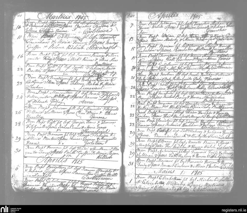 Keel; County of Kerry; Diocese of Kerry. Baptisms, Mar. 1805 to May 1805