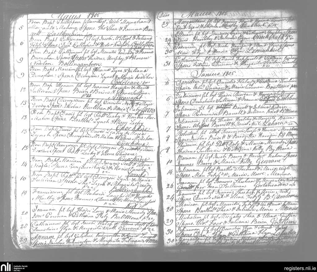 Keel; County of Kerry; Diocese of Kerry. Baptisms, May 1805 to June 1805