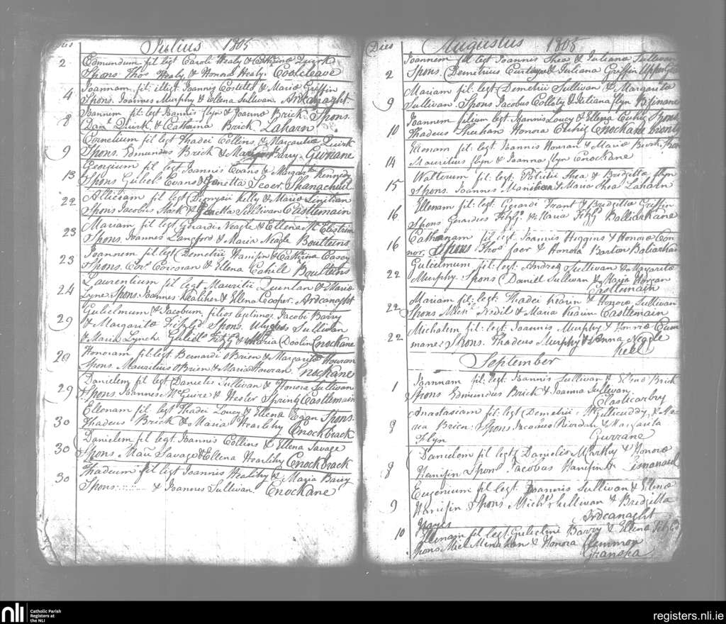 Keel; County of Kerry; Diocese of Kerry. Baptisms, July 1805 to Sep. 1805
