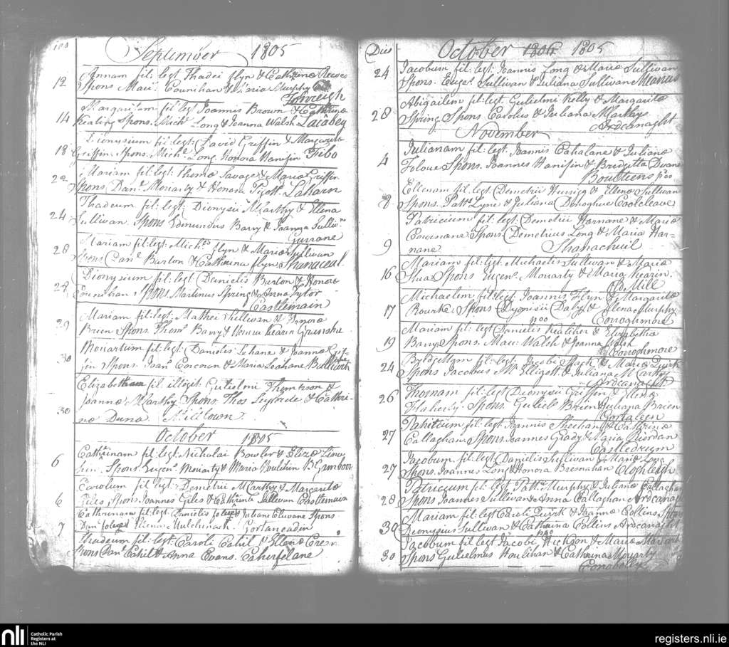 Keel; County of Kerry; Diocese of Kerry. Baptisms, Sep. 1805 to Nov. 1805