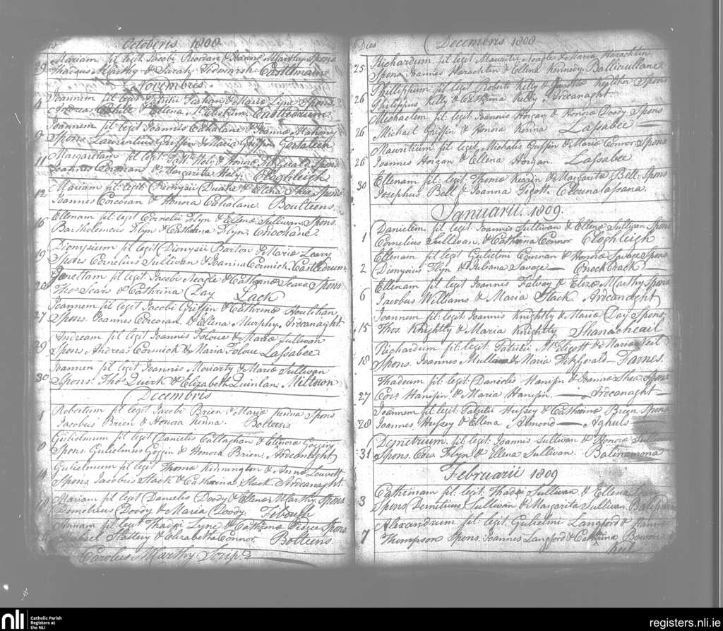 Keel; County of Kerry; Diocese of Kerry. Baptisms, Oct. 1808 to Feb. 1809
