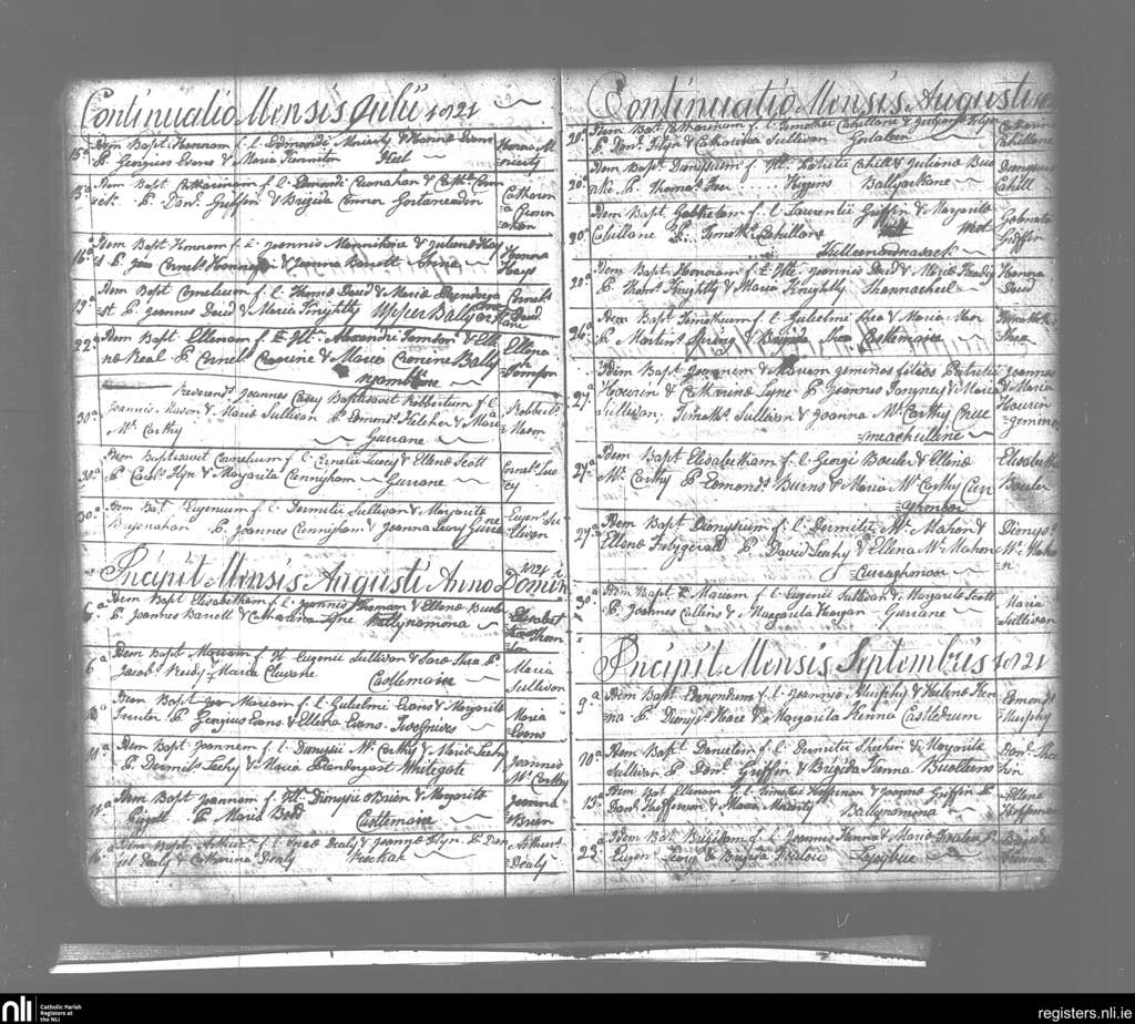 Keel; County of Kerry; Diocese of Kerry. Baptisms, July 1821 to Sep. 1821