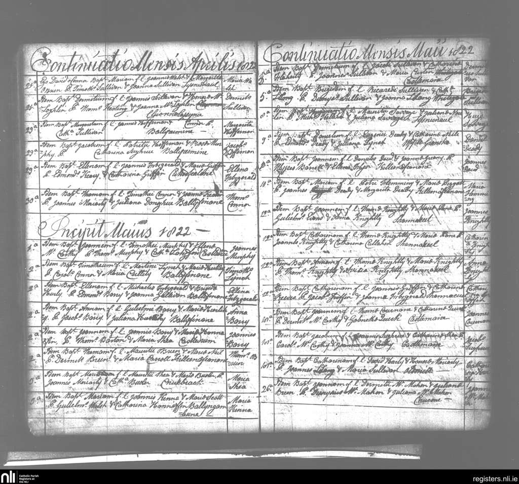 Keel; County of Kerry; Diocese of Kerry. Baptisms, Apr. 1822 to May 1822