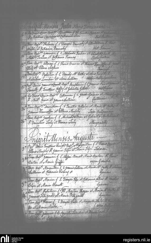 Keel; County of Kerry; Diocese of Kerry. Baptisms, July 1834 to Aug. 1834