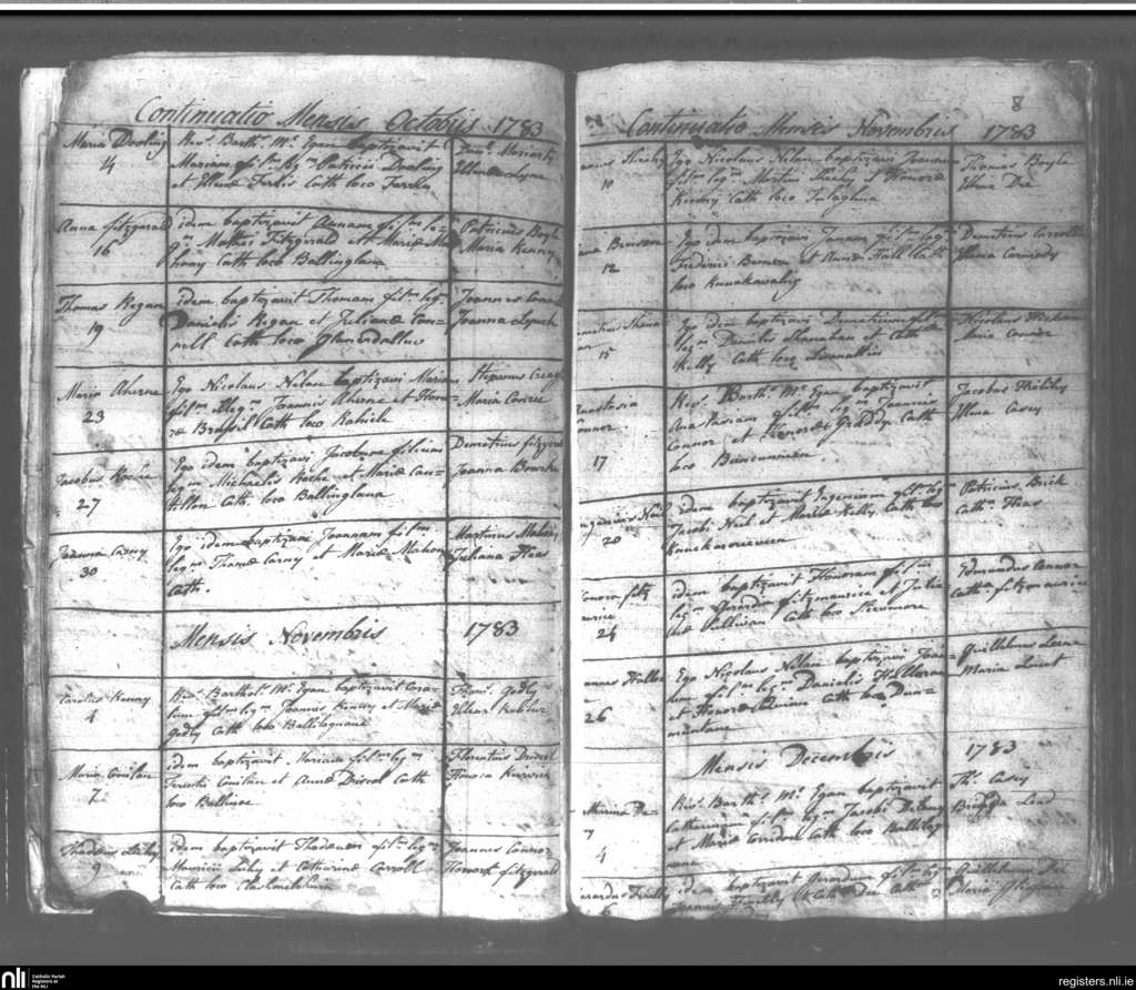 Killury; County of Kerry; Diocese of Kerry. Baptisms, Oct. 1783 to Dec. 1783