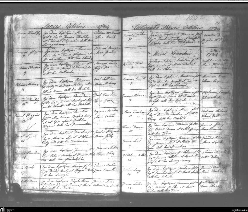 Killury; County of Kerry; Diocese of Kerry. Baptisms, Oct. 1784 to Nov. 1784