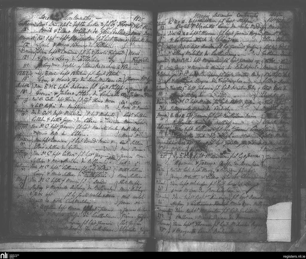 Killury; County of Kerry; Diocese of Kerry. Baptisms, Dec. 1835