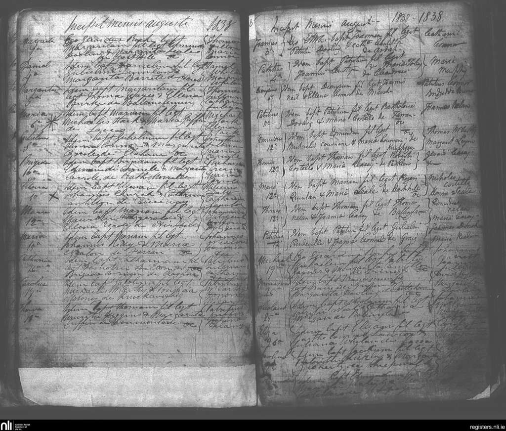 Killury; County of Kerry; Diocese of Kerry. Baptisms, Aug. 1838