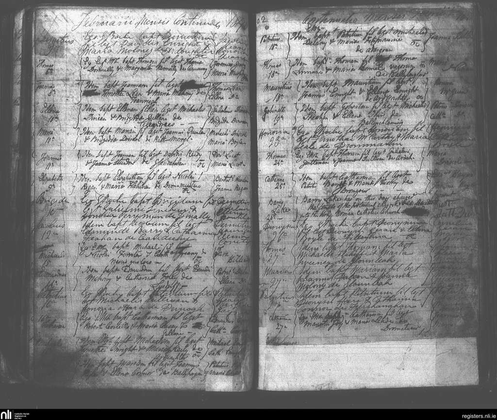 Killury; County of Kerry; Diocese of Kerry. Baptisms, Feb. 1840