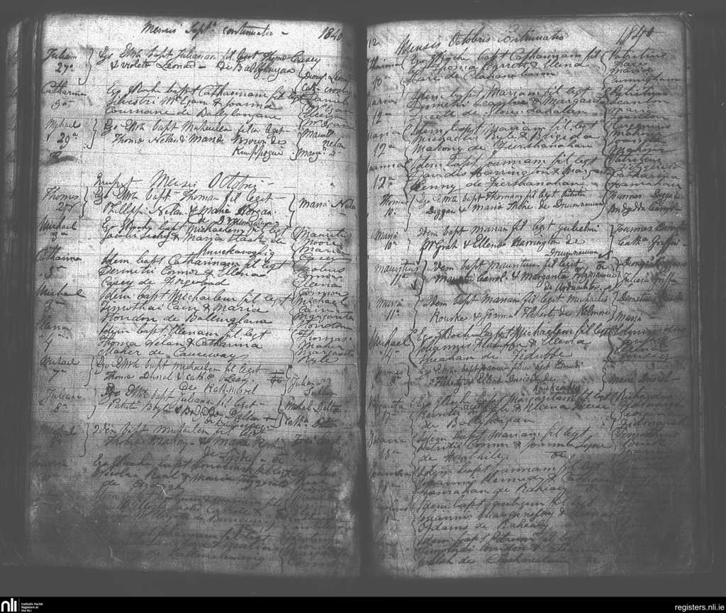 Killury; County of Kerry; Diocese of Kerry. Baptisms, Sep. 1840 to Oct. 1840