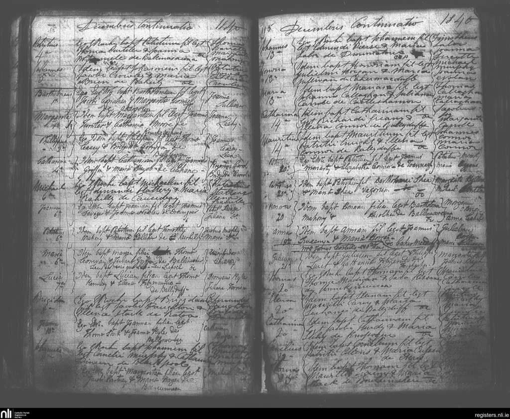 Killury; County of Kerry; Diocese of Kerry. Baptisms, Dec. 1840