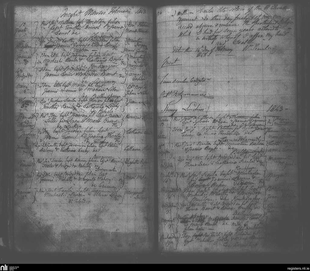 Killury; County of Kerry; Diocese of Kerry. Baptisms, Feb. 1843