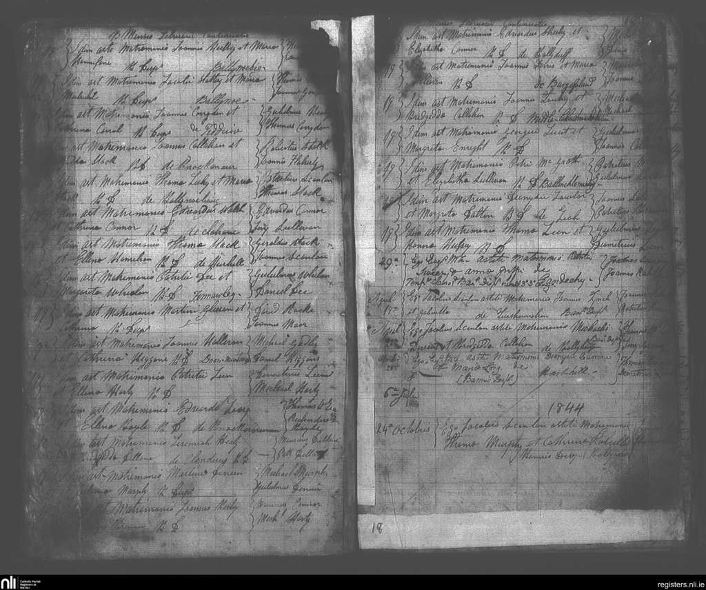 Killury; County of Kerry; Diocese of Kerry. Marriages, Feb. 1844 to Oct. 1844