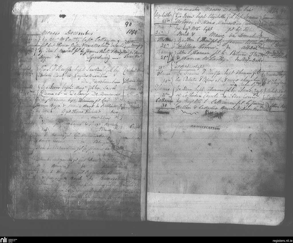 Killury; County of Kerry; Diocese of Kerry. Baptisms, Dec. 1854