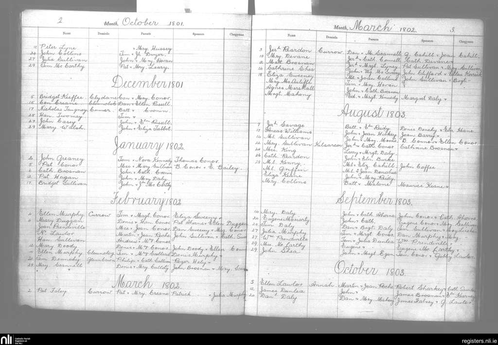 Killeentierna; County of Kerry; Diocese of Kerry. Baptisms, Oct. 1801 to Oct. 1803