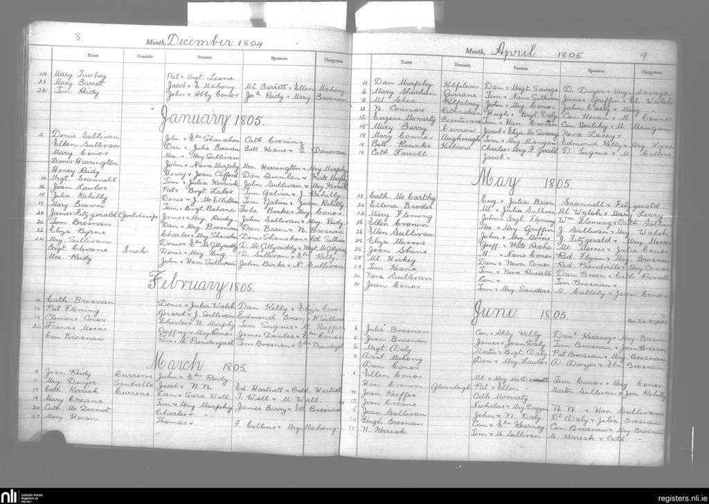 Killeentierna; County of Kerry; Diocese of Kerry. Baptisms, Dec. 1804 to June 1805