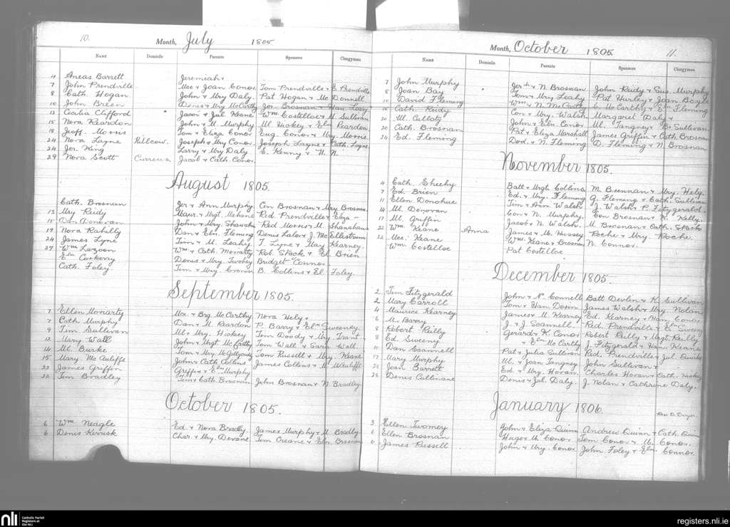 Killeentierna; County of Kerry; Diocese of Kerry. Baptisms, July 1805 to Jan. 1806