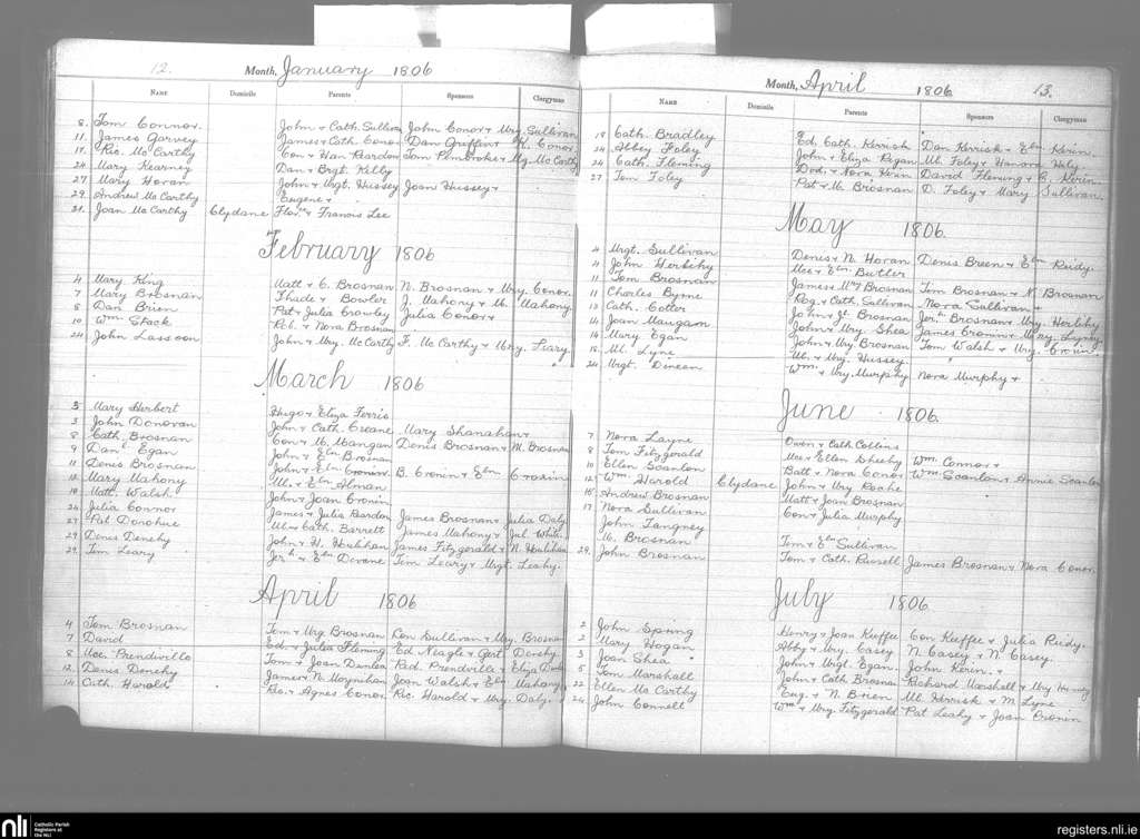 Killeentierna; County of Kerry; Diocese of Kerry. Baptisms, Jan. 1806 to July 1806