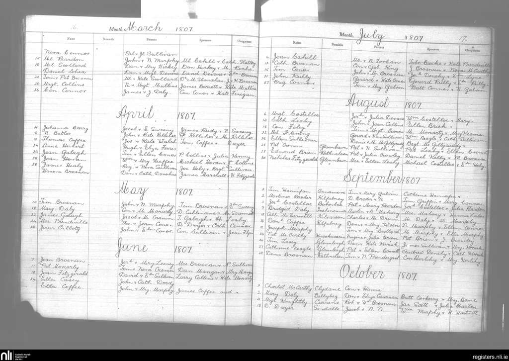 Killeentierna; County of Kerry; Diocese of Kerry. Baptisms, Mar. 1807 to Oct. 1807