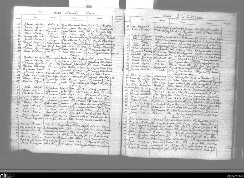 Killeentierna; County of Kerry; Diocese of Kerry. Baptisms, Apr. 1832 to Oct. 1832