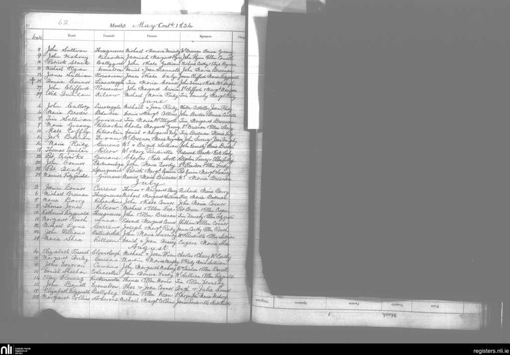 Killeentierna; County of Kerry; Diocese of Kerry. Baptisms, May 1834 to Aug. 1834
