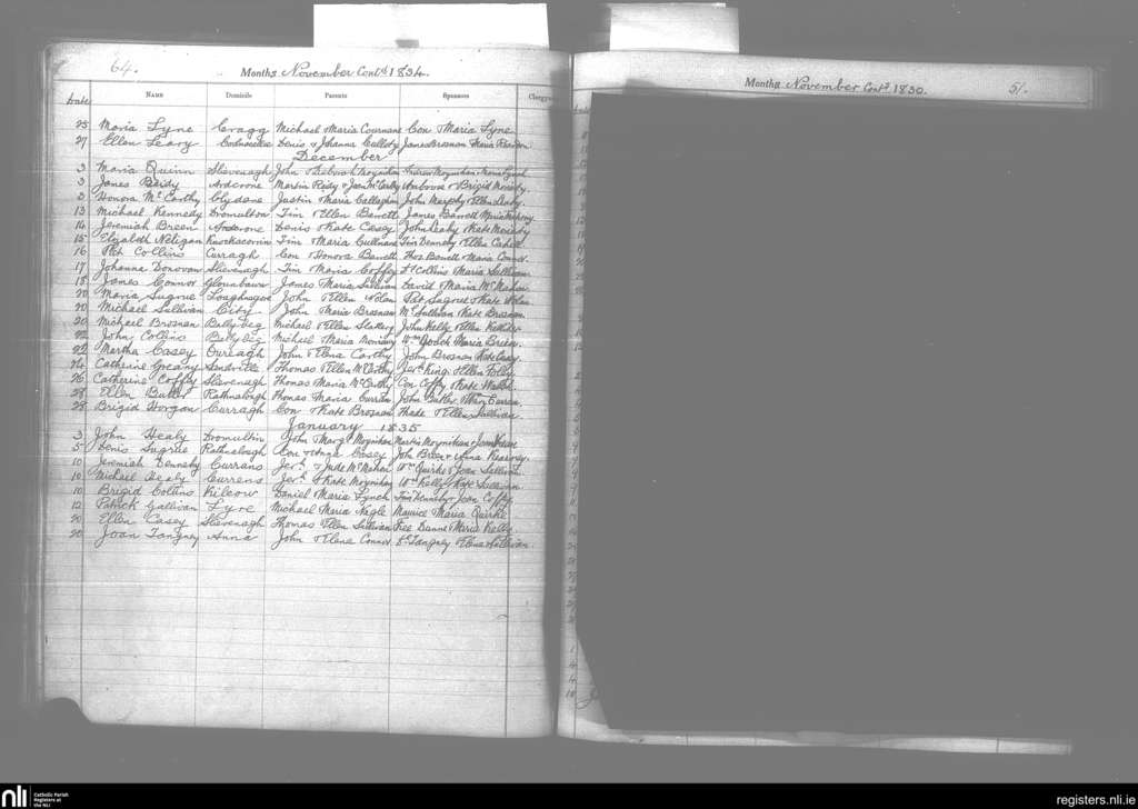 Killeentierna; County of Kerry; Diocese of Kerry. Baptisms, Nov. 1834 to Jan. 1835