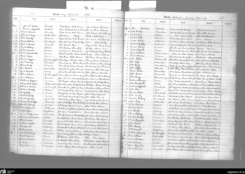 Killeentierna; County of Kerry; Diocese of Kerry. Baptisms, May 1835 to Jan. 1836