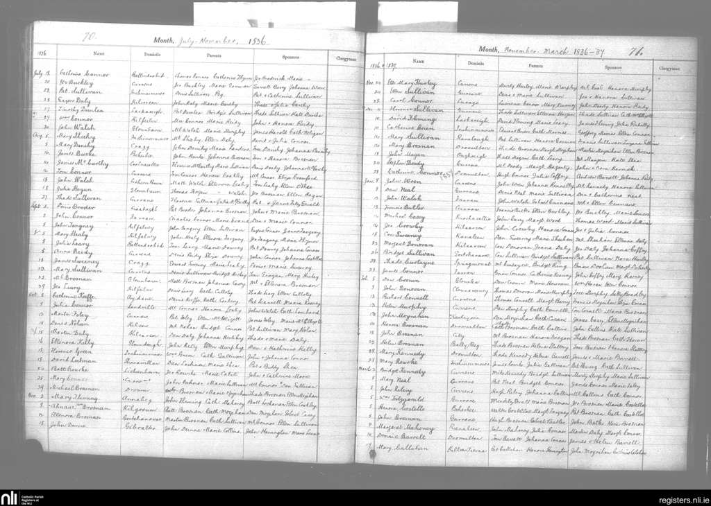 Killeentierna; County of Kerry; Diocese of Kerry. Baptisms, July 1836 to Mar. 1837