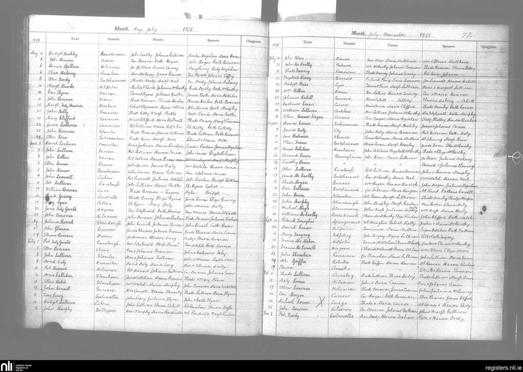 Killeentierna; County of Kerry; Diocese of Kerry. Baptisms, May 1838 to Nov. 1838