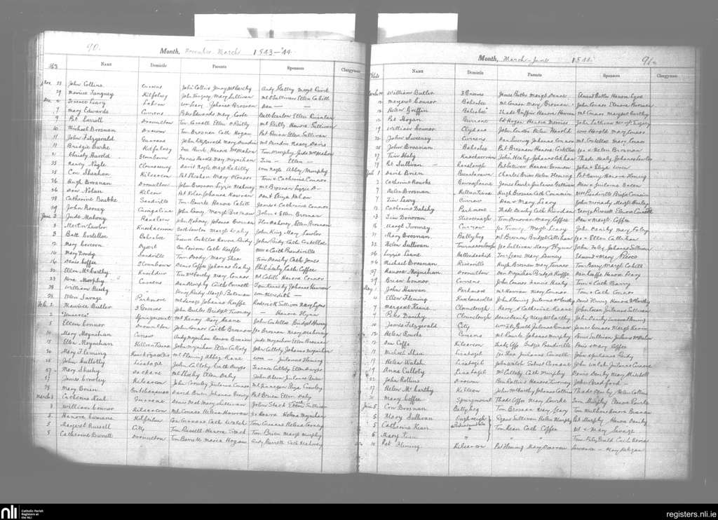 Killeentierna; County of Kerry; Diocese of Kerry. Baptisms, Nov. 1843 to June 1844