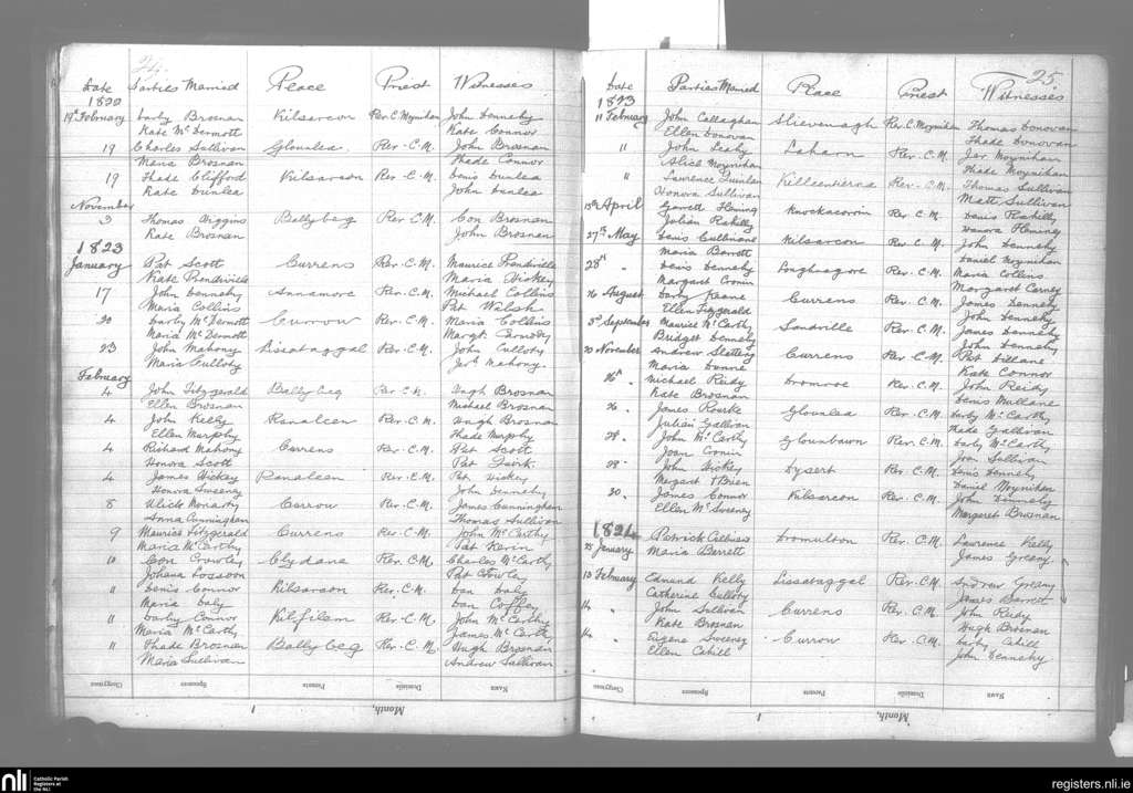 Killeentierna; County of Kerry; Diocese of Kerry. Marriages, Feb. 1822 to Feb. 1824
