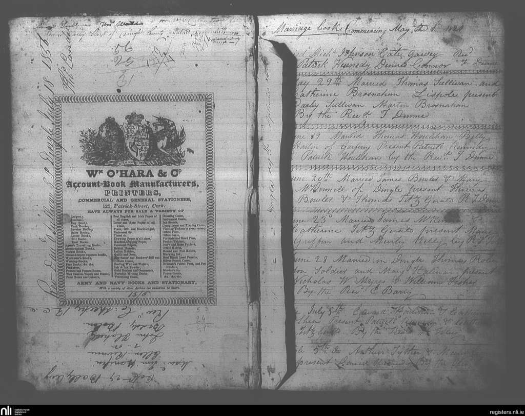 Dingle; County of Kerry; Diocese of Kerry. Marriages, May 1821 to July 1821