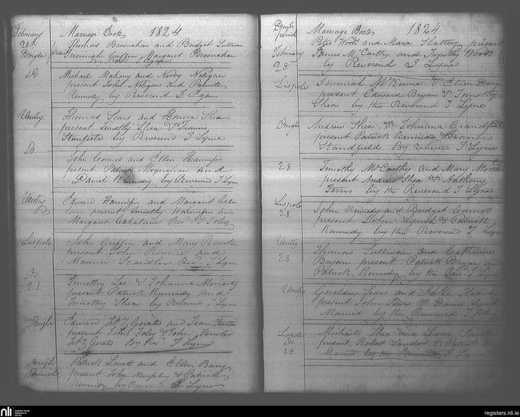 Dingle; County of Kerry; Diocese of Kerry. Marriages, Feb. 1824