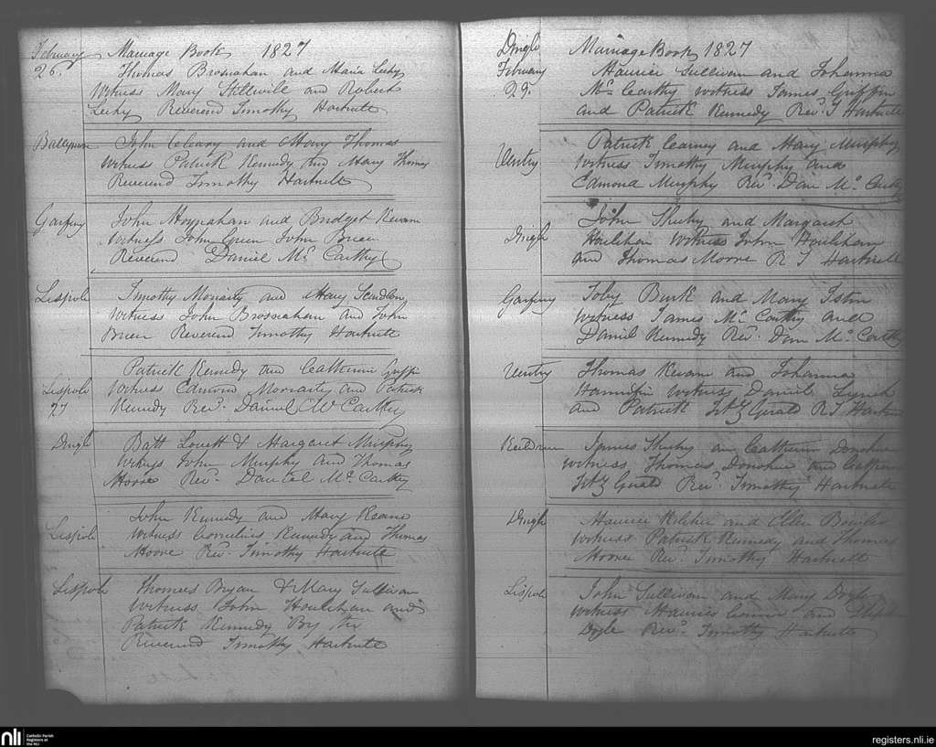 Dingle; County of Kerry; Diocese of Kerry. Marriages, Feb. 1827