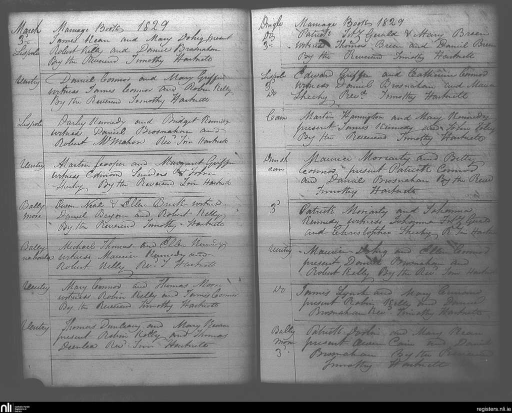 Dingle; County of Kerry; Diocese of Kerry. Marriages, Mar. 1829