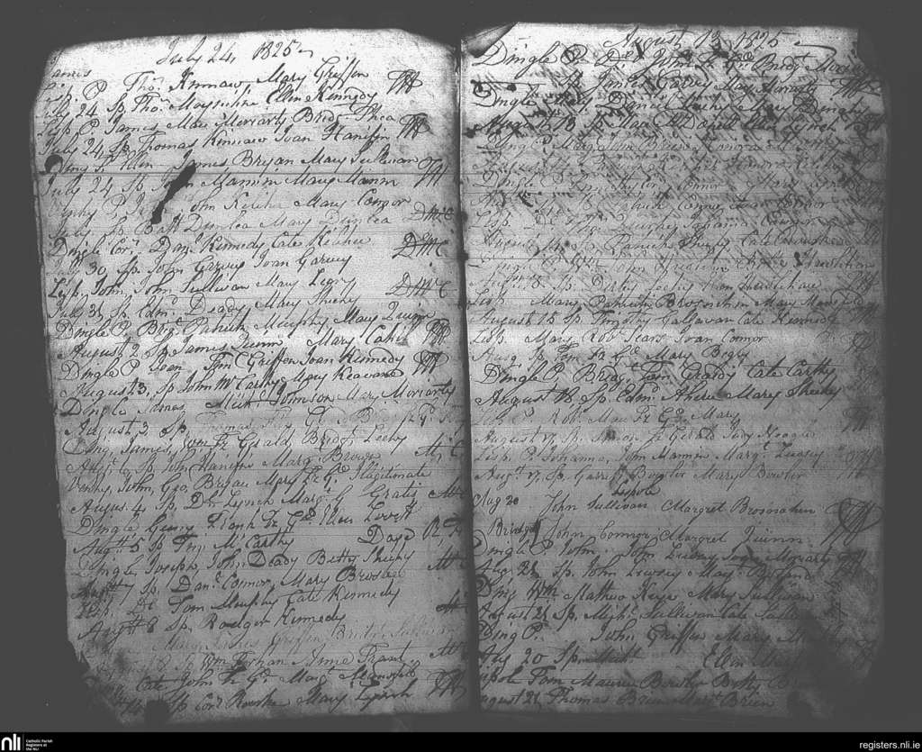 Dingle; County of Kerry; Diocese of Kerry. Baptisms, July 1825 to Aug. 1825