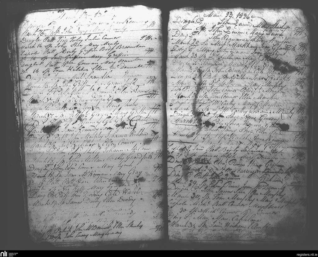 Dingle; County of Kerry; Diocese of Kerry. Baptisms, Mar. 1826