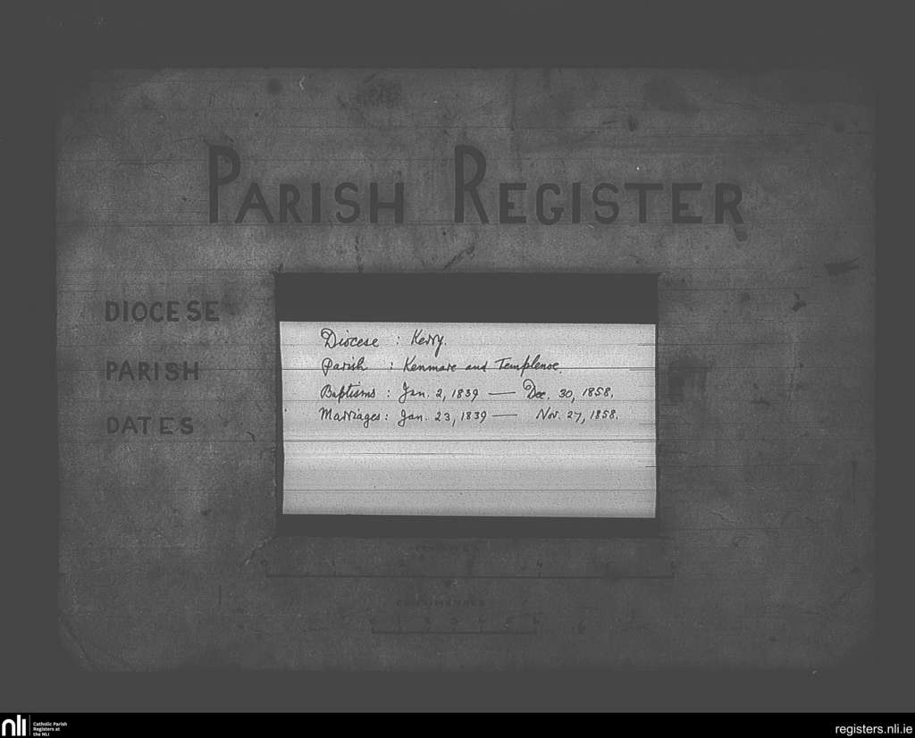 Templenoe; County of Kerry; Diocese of Kerry. Baptisms, Marriages