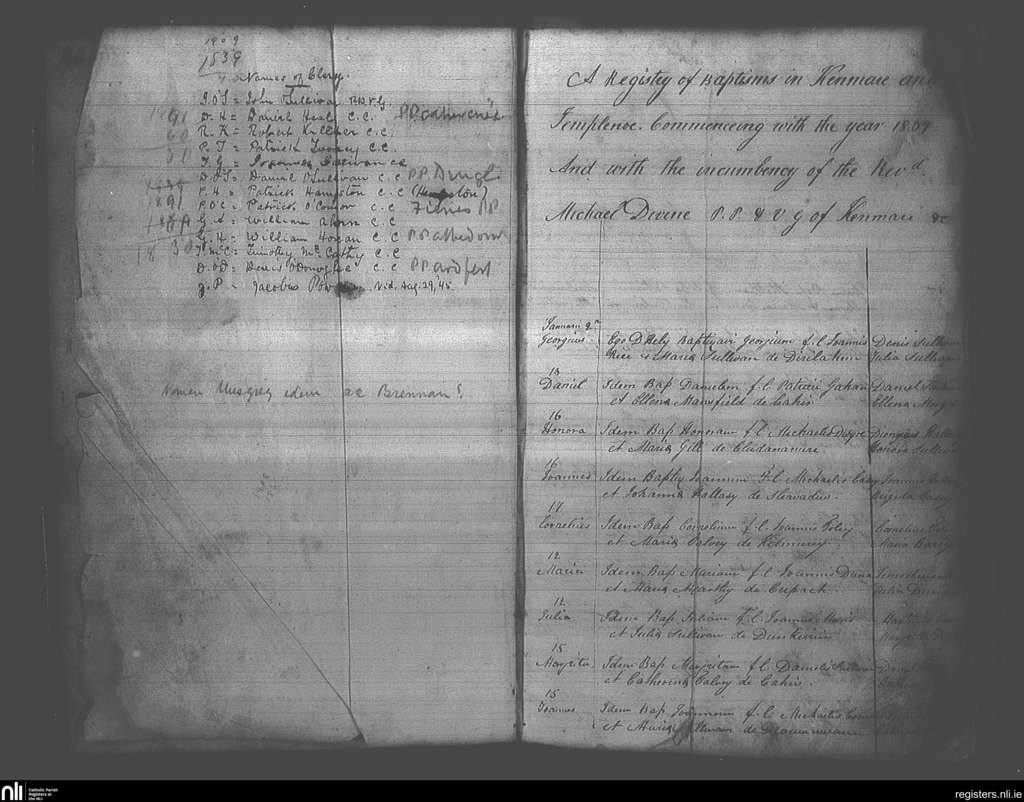 Templenoe; County of Kerry; Diocese of Kerry. Baptisms, Jan. 1839