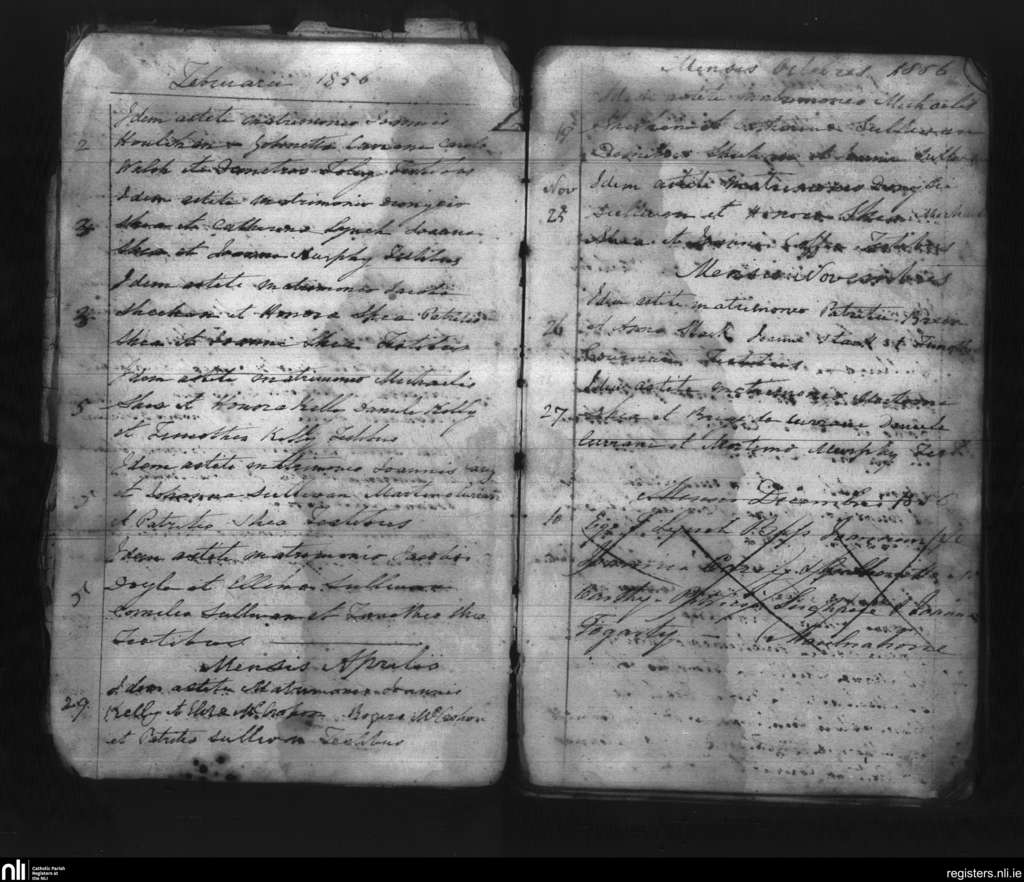 Dromod; County of Kerry; Diocese of Kerry. Marriages, Feb. 1856 to Dec. 1856