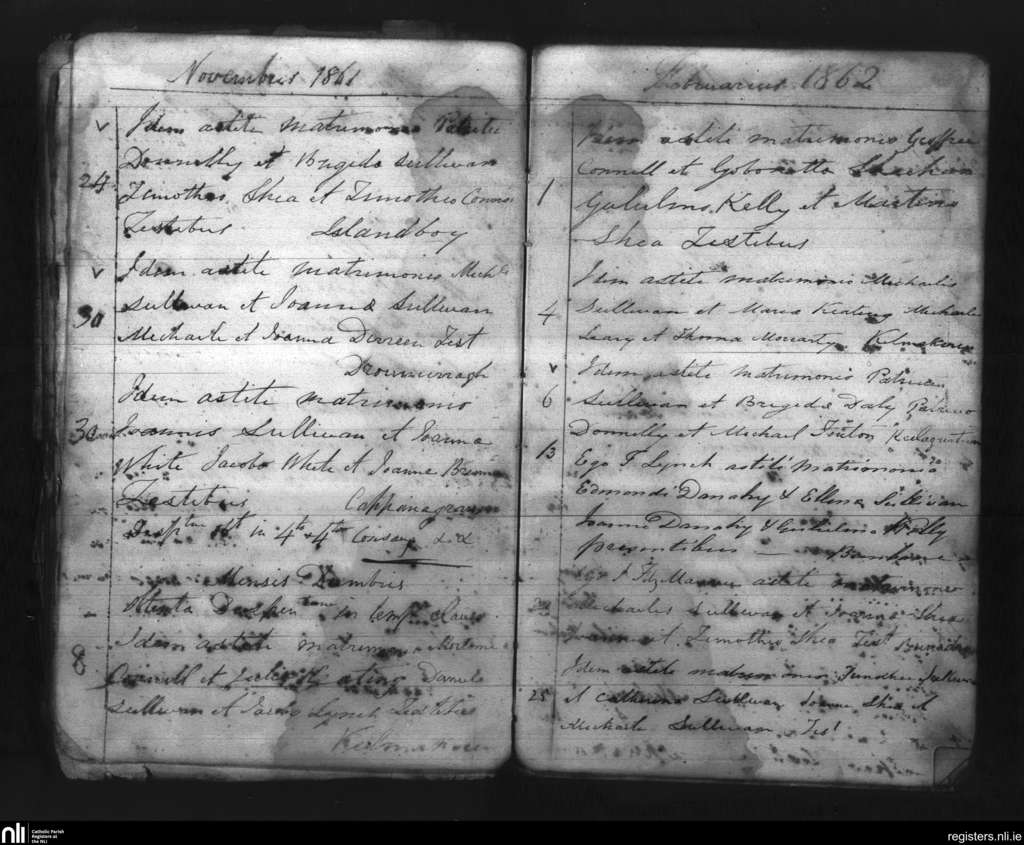 Dromod; County of Kerry; Diocese of Kerry. Marriages, Nov. 1861 to Feb. 1862