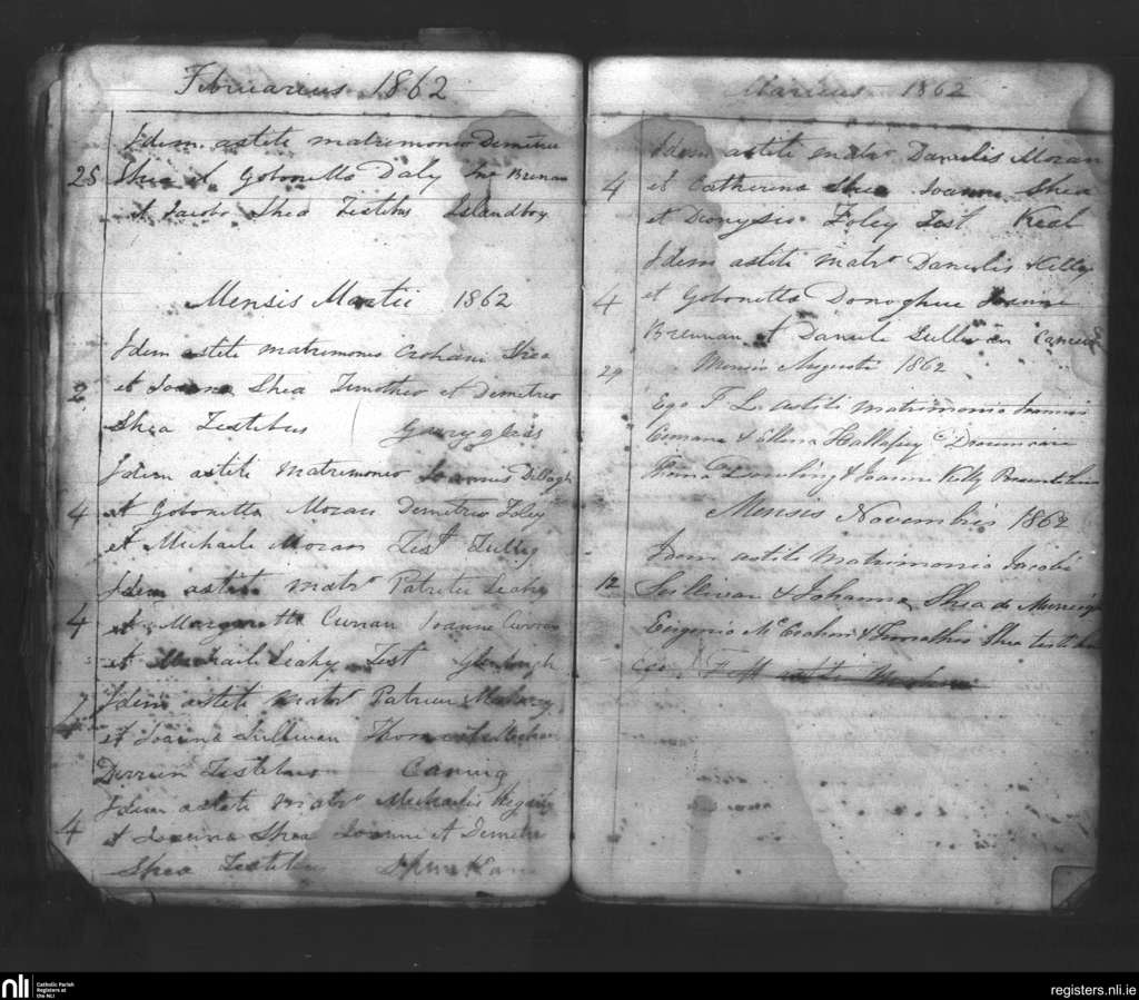 Dromod; County of Kerry; Diocese of Kerry. Marriages, Feb. 1862 to Nov. 1862