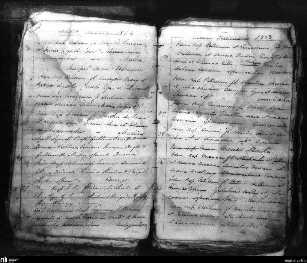 Dromod; County of Kerry; Diocese of Kerry. Baptisms, Jan. 1853 to Mar. 1853