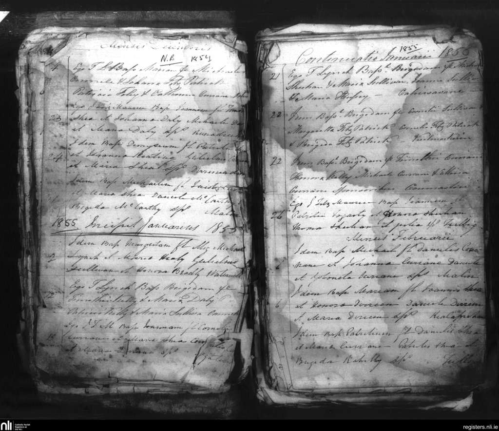 Dromod; County of Kerry; Diocese of Kerry. Baptisms, Dec. 1854 to Feb. 1855