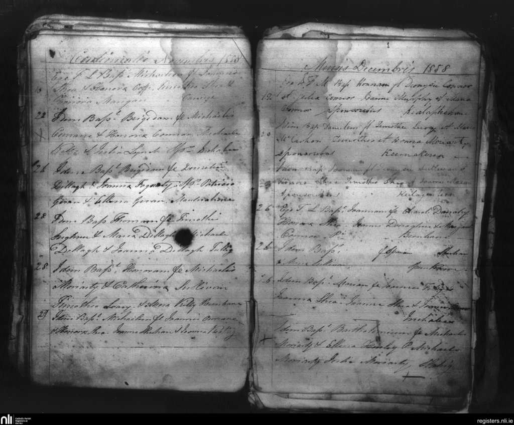 Dromod; County of Kerry; Diocese of Kerry. Baptisms, Nov. 1858 to Dec. 1858