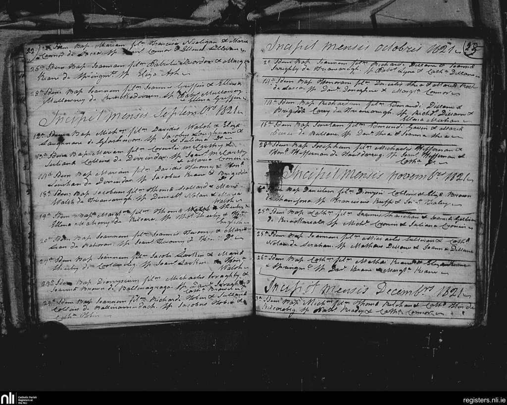 Duagh; County of Kerry; Diocese of Kerry. Baptisms, Aug. 1821 to Dec. 1821