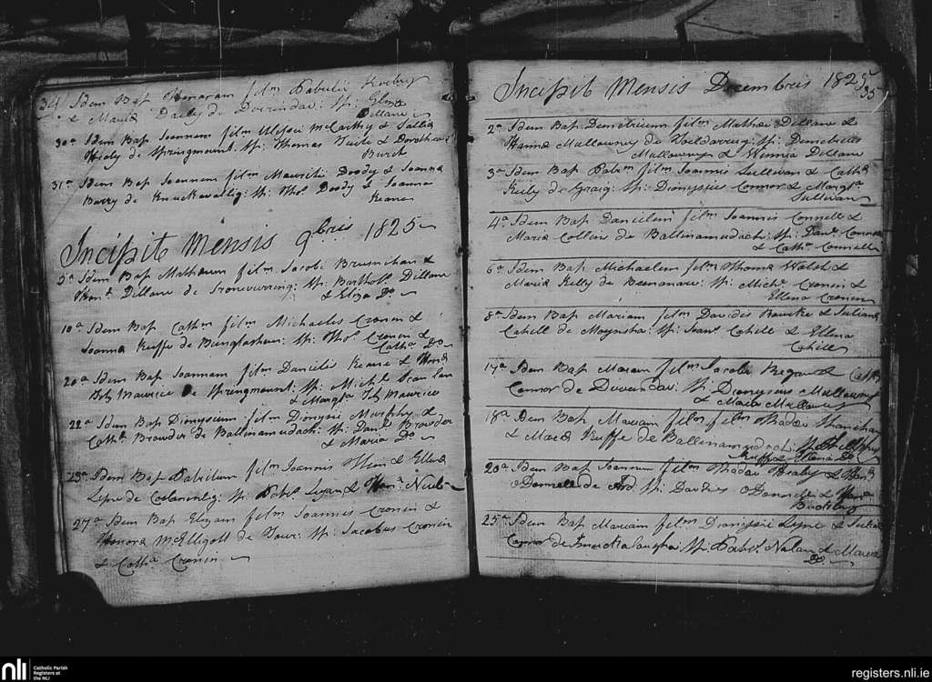 Duagh; County of Kerry; Diocese of Kerry. Baptisms, Oct. 1825 to Dec. 1825