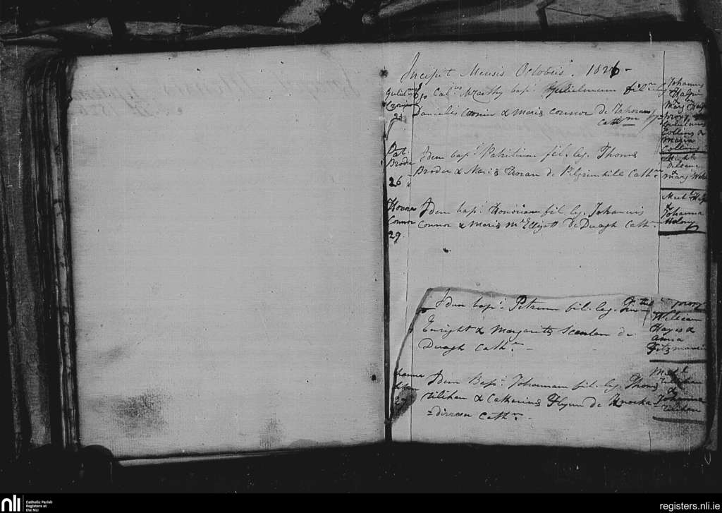 Duagh; County of Kerry; Diocese of Kerry. Baptisms, Oct. 1826