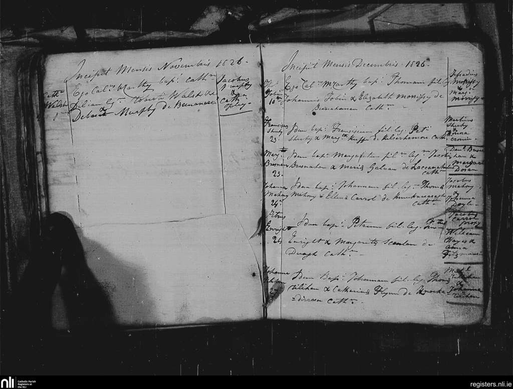 Duagh; County of Kerry; Diocese of Kerry. Baptisms, Nov. 1826 to Dec. 1826
